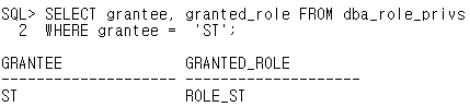 <user 또는 role에 할당된 시스템 권한 조회 명령어>