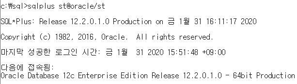 // tns명인 oracle로 정상적으로 접속이 되는 것을 확인할 수 있다.