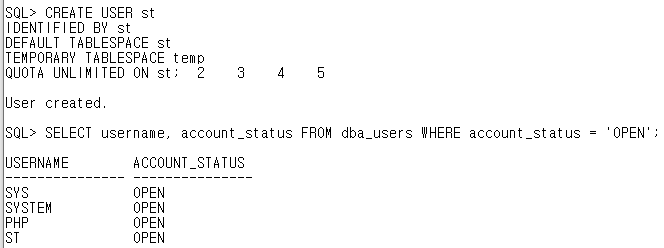 - 일반 사용자는 SYSTEM, SYSAUX, UNDOTBS, TEMP이외의 USERS만 사용 가능.