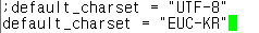 default_charset = "EUC-KR" (UTF-8 변경 가능)