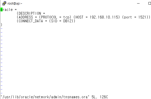 #vi /usr/lib/oracle/network/admin/tnsnames.ora