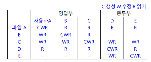 - 재량적(임의적) 보호 : 알아야할 필요성(임의적 접근제어(사용자 계정을 통해 관리))