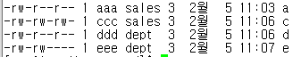 - 사용자는 aaa, bbb, ccc, ddd, eee로, 부서는 sales와 dept로 설정