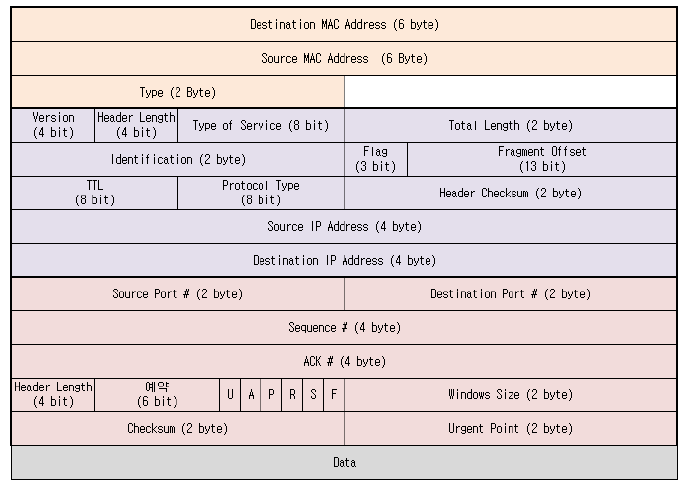 - DA(Destination Address) : 목적지 시스템의 이더넷 주소