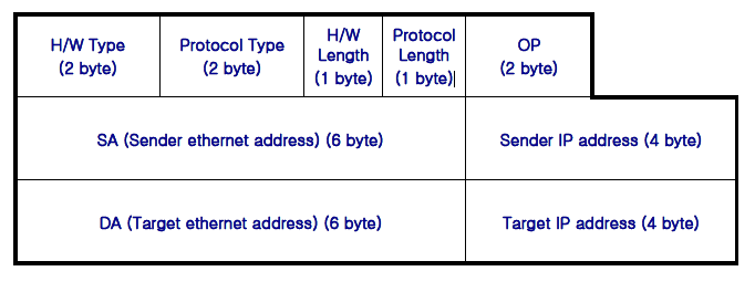 - SA(Source Address) :패킷을 전송하는 호스트의 이더넷 주소