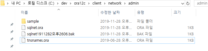 오라클 홈 위치 -> network > admin 안에 tnsnames.ora 파일 저장