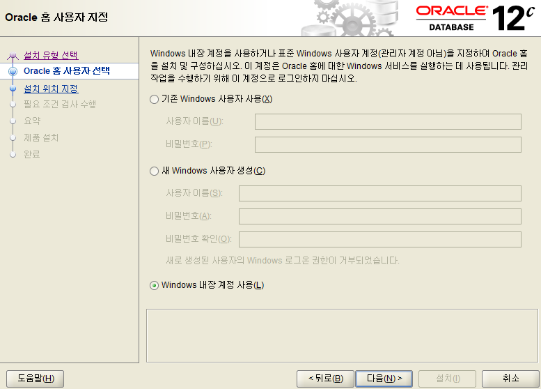 윈도우즈 내장 계정 사용 선택