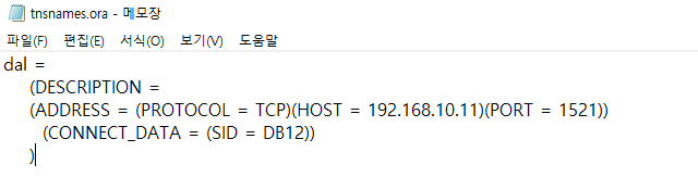 dal이라는 명령어를 사용하면 192.168.10.11에 포트번호 1521번으로 접속 한다는 뜻