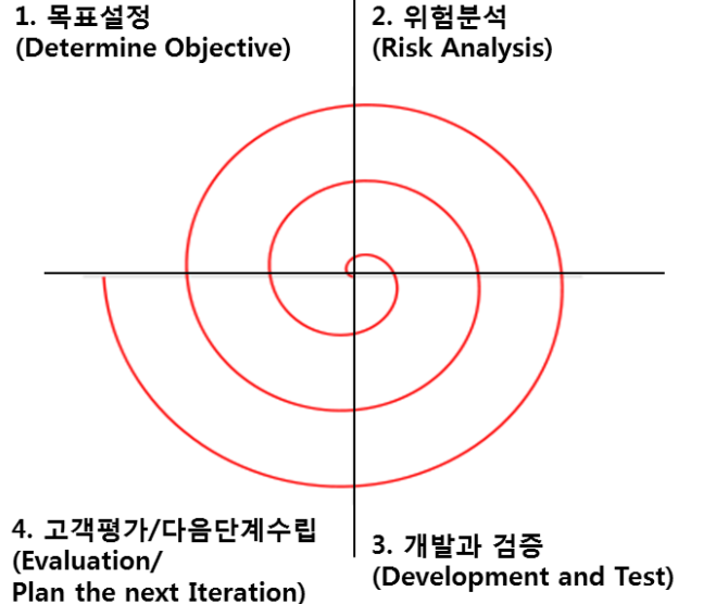 - 나선형 개발 방법은 패키지 제품 등을 개발할 경우 유용한 방법이 될 수 있음.