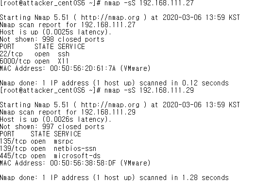 # tcpdump -xX -i ens32 dst 192.168.111.26 > nmap1