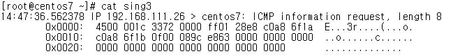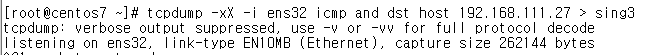 # tcpdump -xX -i ens32 icmp and dst host 192.168.111.27 > sing3