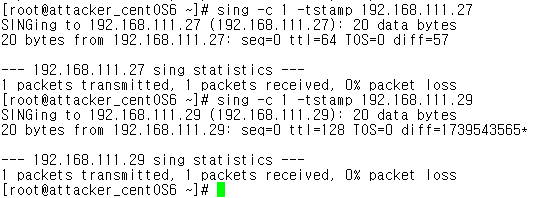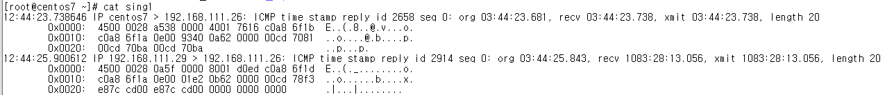 // sing을 이용해 192.168.111.27과 192.168.111.29 타임 스탬프 요청