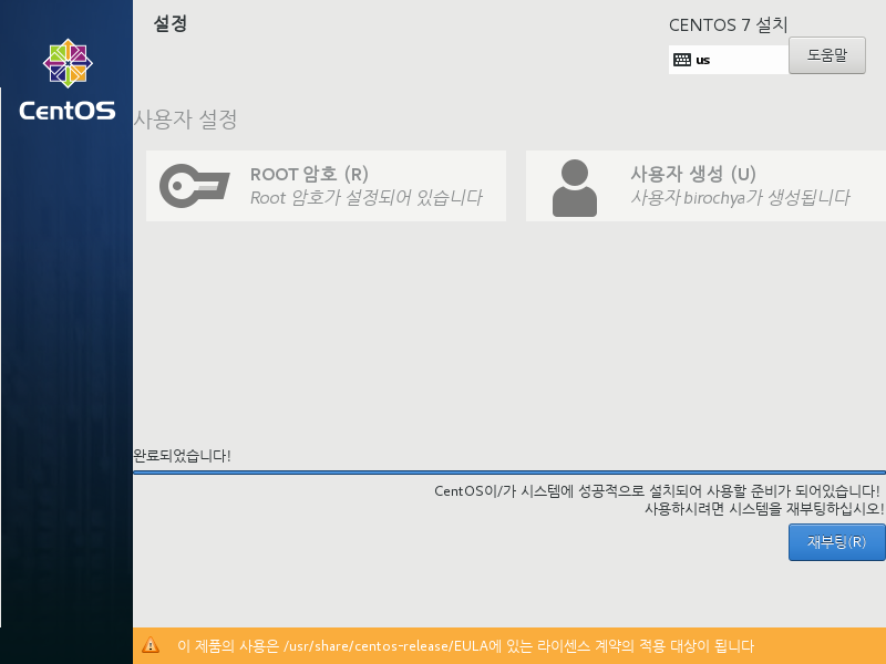 설치 후에 재부팅