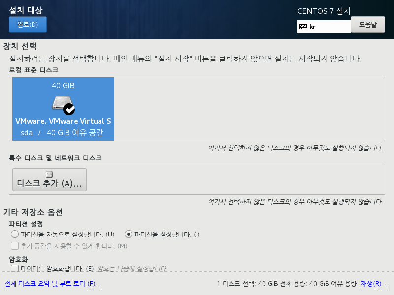 - 파티션 설정 : 자동 설정이 아닌 수동 설정