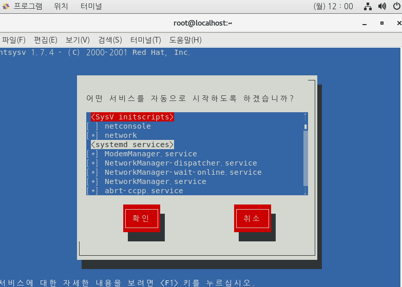 1. 부팅시 불필요한 데몬을 정지한 후 필요한 데몬만 시작되게 하기