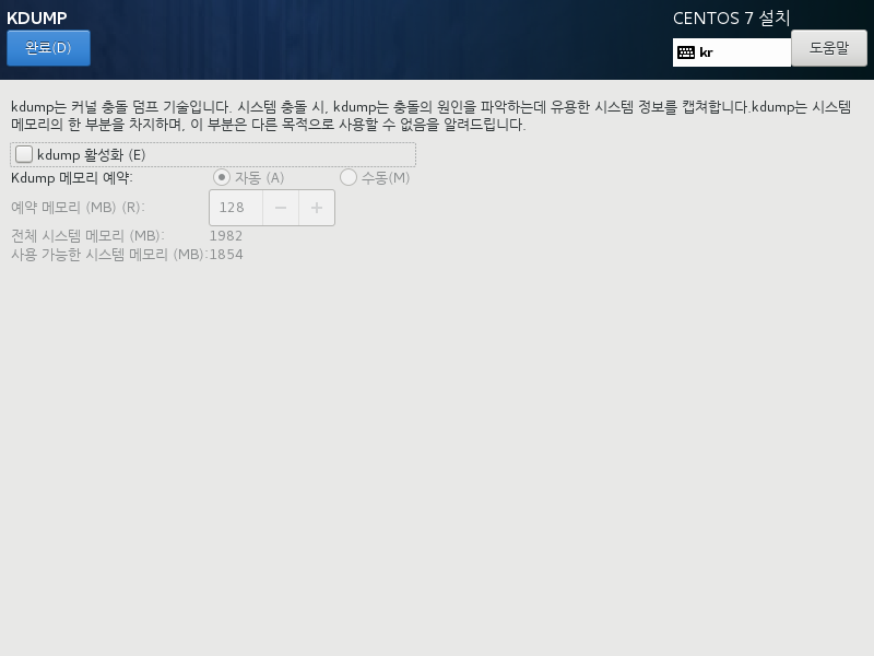 - KDUMP 설정 : 활성화 X