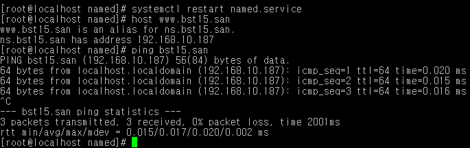 3. systemctl restart named.service으로 재시작후 host로 확인
