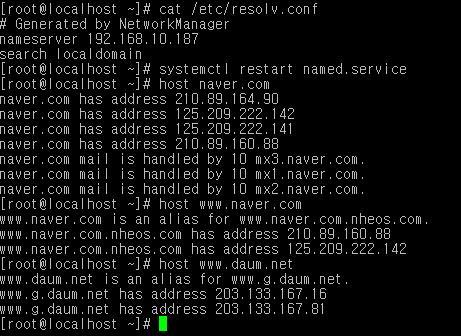2. systemctl restart named.service으로 재시작후 host로 확인