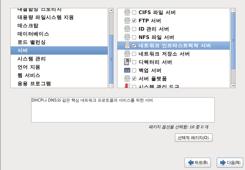 18. 지금 선택으로 선택후 다음, 서버 탭에서 FTP서버와 네트워크 인프라스트럭쳐 서버 체크