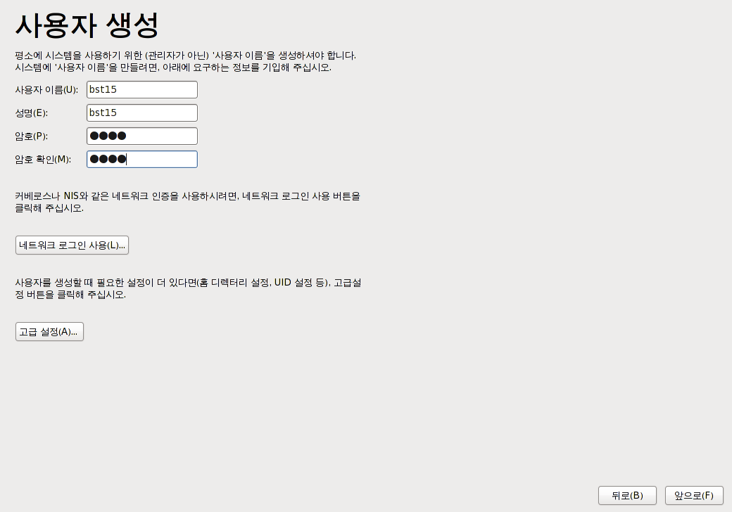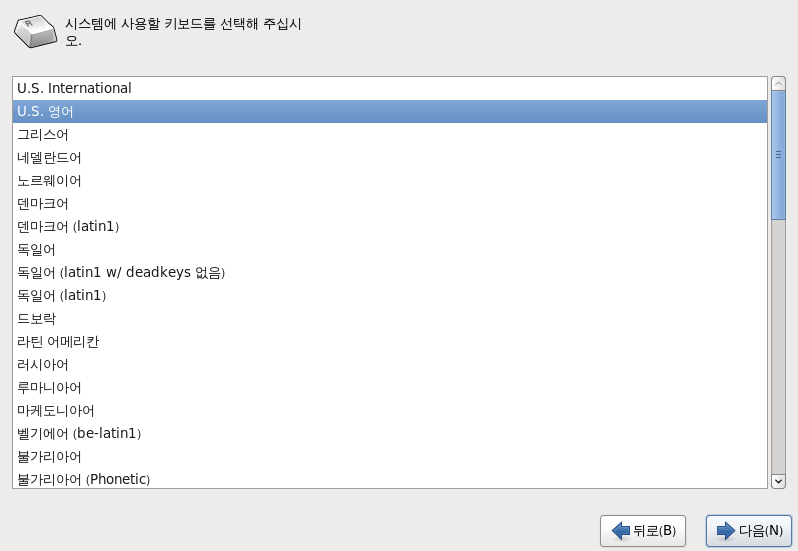 10. 설치언어 : 한국어, 시스템에 사용할 키보드 : U.S 영어 선택