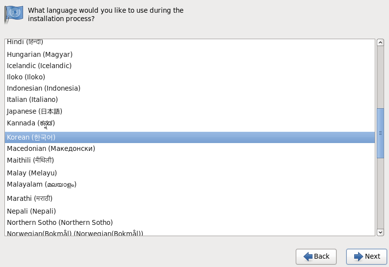 10. 설치언어 : 한국어, 시스템에 사용할 키보드 : U.S 영어 선택