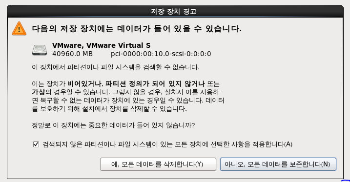 11 . 기본 저장 장치 선택, 예, 모든 데이터를 삭제합니다 선택