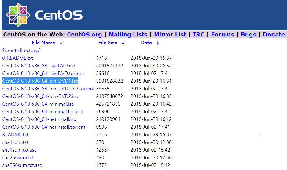 1. http://mirror.kakao.com/centos/6.10/isos/x86_64/ 에서 CentOS-6.10-x86_64-bin-DVD1.iso 다운로드
