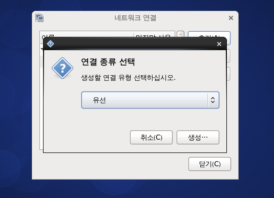 21. 네트워크 연결 -> 생성. 각자의 설정에 맞게 IP주소, 넷마스크, 게이트웨이, DNS 설정