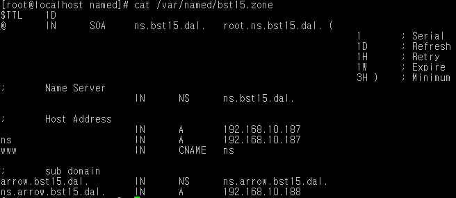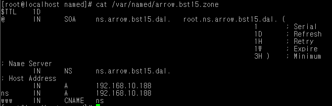 3. arrow.bst15.dal DNS 서버에서 /var/named에 arrow.bst15.zone 파일 설정