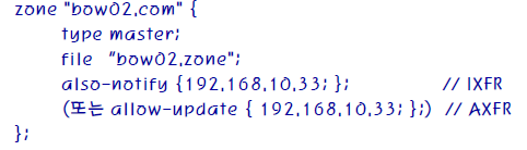 also-notify {192.168.10.188;}; // 192.168.10.188은 슬레이브 서버의 ip