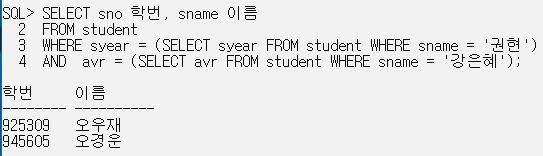 WHERE syear = (SELECT syear FROM student WHERE sname = '권현')