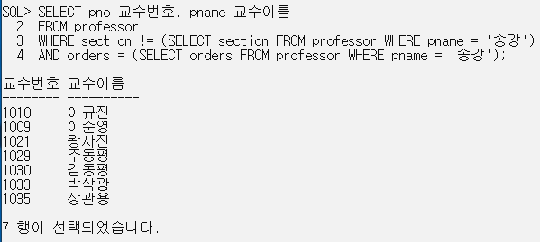 WHERE section != (SELECT section FROM professor WHERE pname = '송강')