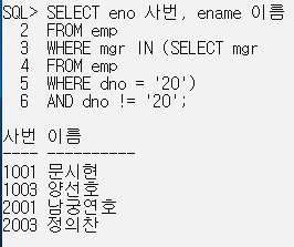 -> 서브쿼리문의 mgr이 여러명이 나올 가능성이 있으니 IN을 사용.
