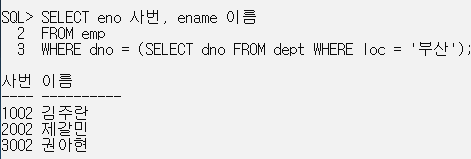 WHERE dno = (SELECT dno FROM dept WHERE loc = '부산');