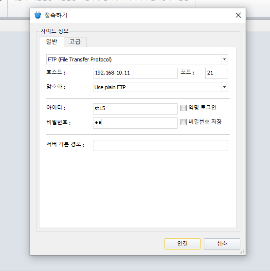 아이디 : 호스트가 설정해놓은 아이디(st15)