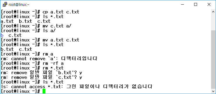 cp a.txt c.txt : a.txt를 c.txt로 복사