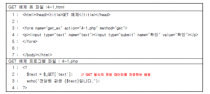 - get 방식은 입력 값을 action에 지정한 URL에 첨가해 전달하는 방식을 의미.