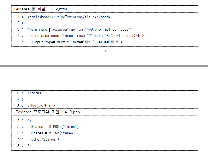 <textarea name = "전달 변수명" row = "행수" cols = "너비">초기값</textarea>