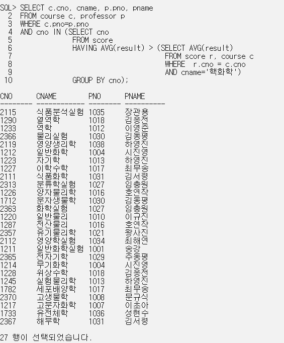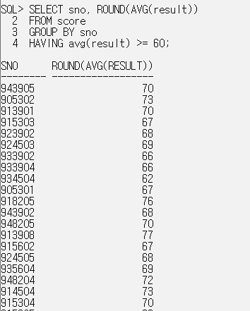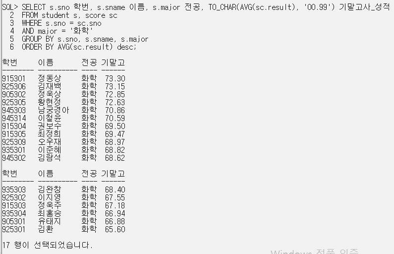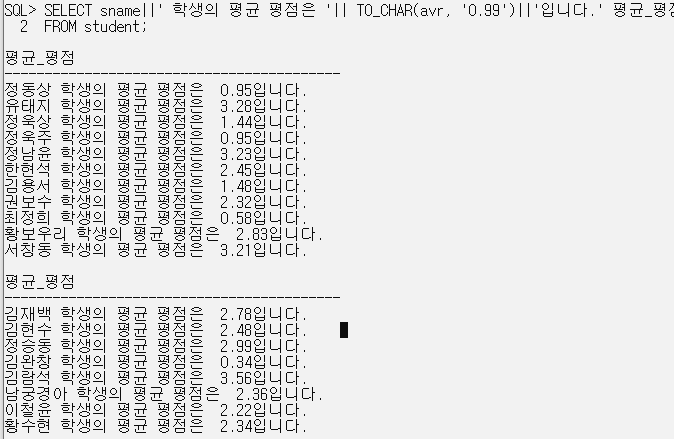 SELECT sname||' 학생의 평균 평점은 '|| TO_CHAR(avr, '0.99')||'입니다.' 평균_평점