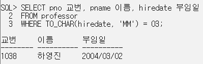 WHERE TO_CHAR(hiredate, 'MM') = 03;