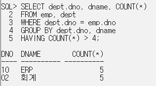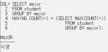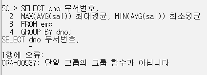 - GROUP BY 설정 없이 일반 컬럼과 기술될 수 없다.