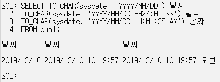 SELECT TO_CHAR(sysdate, 'YYYY/MM/DD') 날짜,
