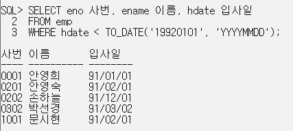 [예제 5]1992년 이전에 입사한 사원의 정보를 검색