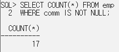 WHERE comm IS NOT NULL; // null이 아닌 사원만 검색