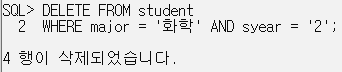 5. 화학과 2학년 학생의 정보를 삭제.