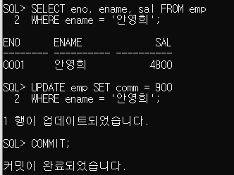 COMMIT; // 작업이 완료됐음을 의미.