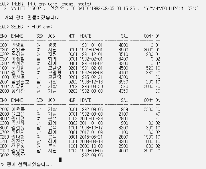 VALUES ('5002', '안영숙', TO_DATE('1992/09/05:08:15:25', 'YYYY/MM/DD:HH24:MI:SS'));