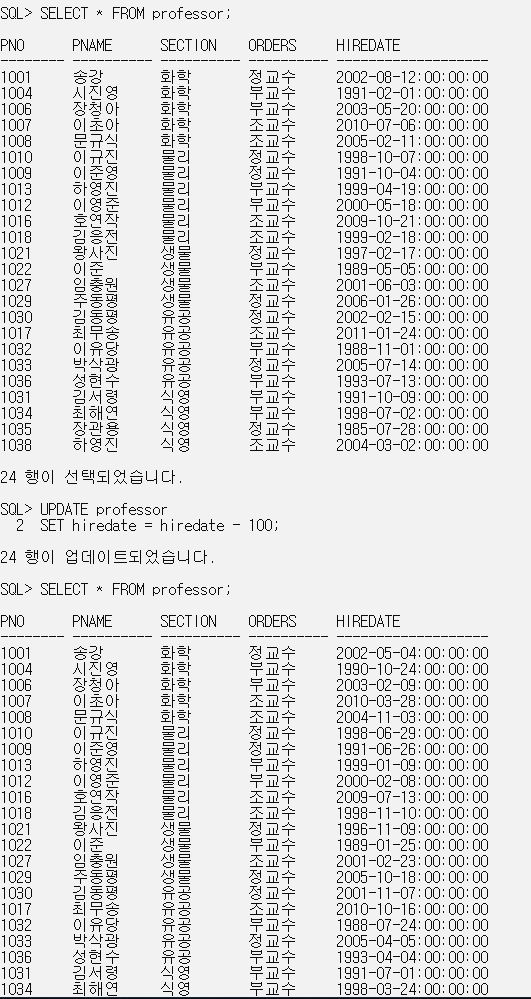 4. 모든 교수의 부임일자를 100일 전으로 수정.
