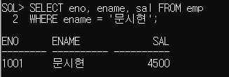 WHERE ename = '문시현'; // 검색됨