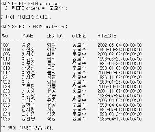 6. 조교수의 정보를 삭제.